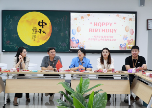 金秋送爽,丹桂飘香,在中秋与国庆同至的喜庆时刻,为增强教职工的归属感和幸福感,凝聚团队力量,商学院于9月25日举办第三季度教职工集体生日会,为教职工们送上温暖与祝福。参加此次活动的有党委组织部(统战部)部长、校工会主席李忆秋、副主席陈广园、商学院领导班子以及教职工代表。