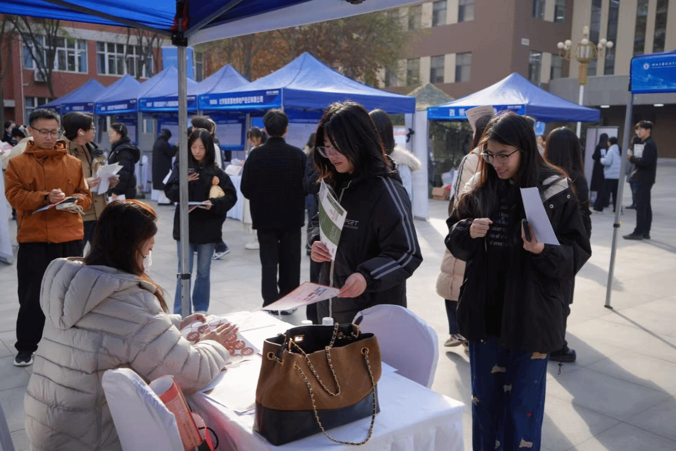 双选会汇集新道科技股份有限公司、北京中路华会计师事务所河北分所、中税联盟(北京)咨询有限公司等34家企业,覆盖金融、房地产、电商、财会、文化传媒等多个领域,为商科类学子提供了多元化的就业选择。双选会现场,企业招聘人员与学生面对面沟通,详细介绍岗位需求、薪资待遇及职业发展路径;学子们结合自身专业与求职规划积极咨询,现场交流氛围热烈。