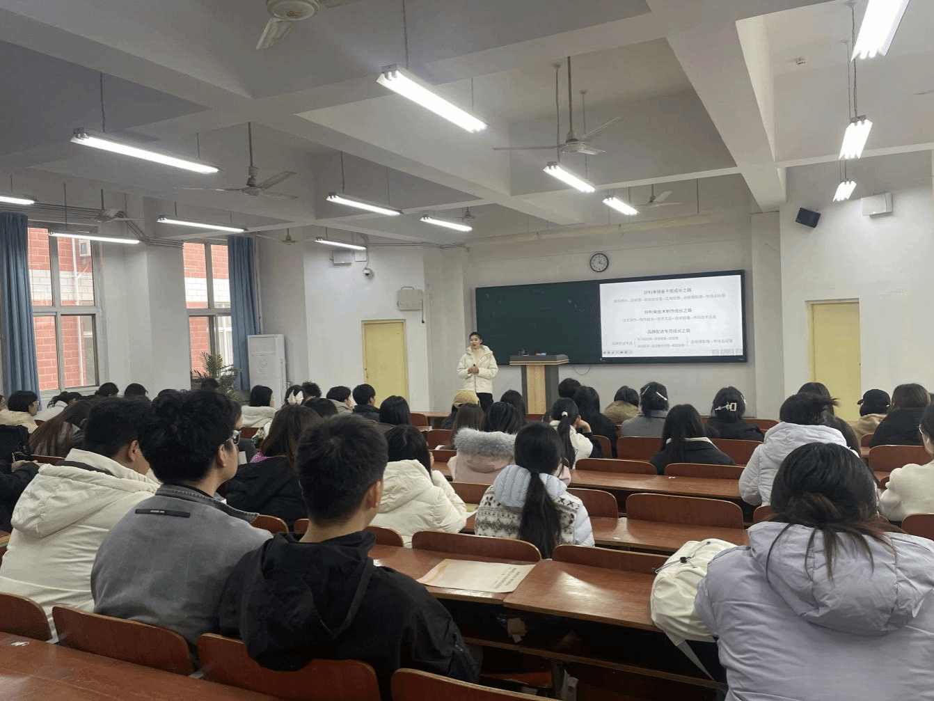 在核心宣讲环节,好利来人力资源负责人系统介绍了本次面向商学院学子开放的招聘岗位,范围涵盖市场营销、电商运营、财务管理、人力资源等关键职能领域,精准对接了不同专业学生的职业发展方向,致力于为每一位有志青年提供实现自我价值的广阔平台与全面支撑。