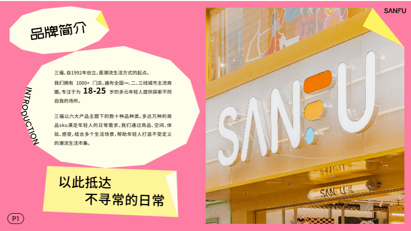 三福注重员工培养和激励,打造一个充满激情和创造力的团队,共同推动公司的发展。秉承诚信经营,履行社会责任,为年轻人的成长和进步作出积极的贡献。三福希望,每一个年轻人在这里都能找到属于自己的潮流生活。