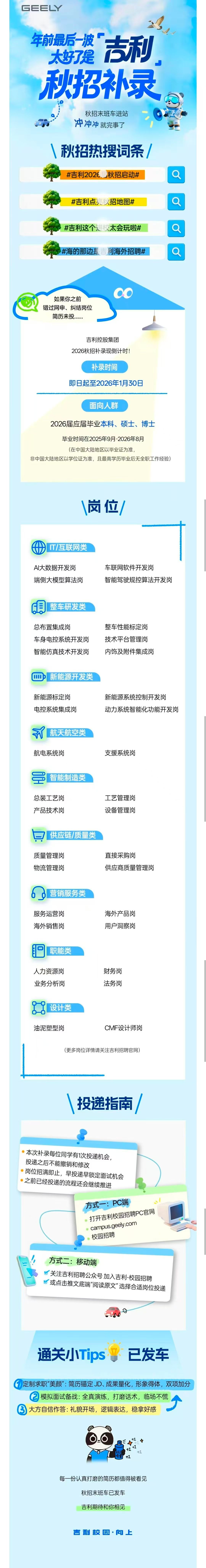 年前最后一波!太好了是吉利秋招补录