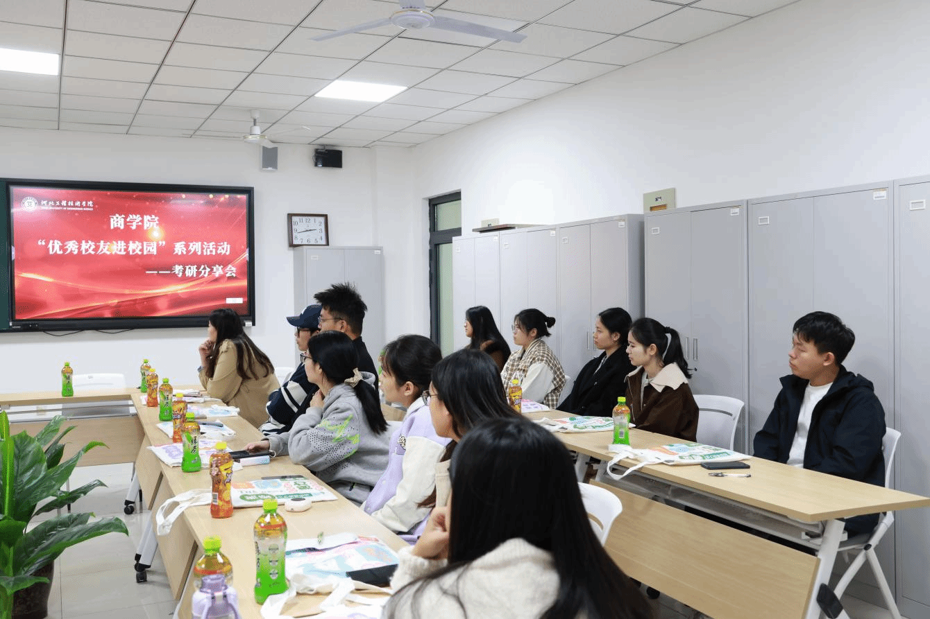 为深化商学院第二届科技文化月活动,助力学子深入了解法律硕士考研特点,明确备考方向。商学院“优秀校友进校园”系列活动暨考研动员会第三场分享会圆满落幕。河北师范大学法律硕士专业优秀校友梁妙音受邀返校,以“法硕备考:从‘入门’到‘上岸’的全流程攻略”为主题分享,既带来实用复习经验,也为有意报考法硕的学子提供了院校参考方向。